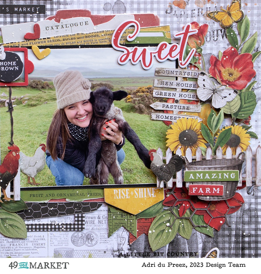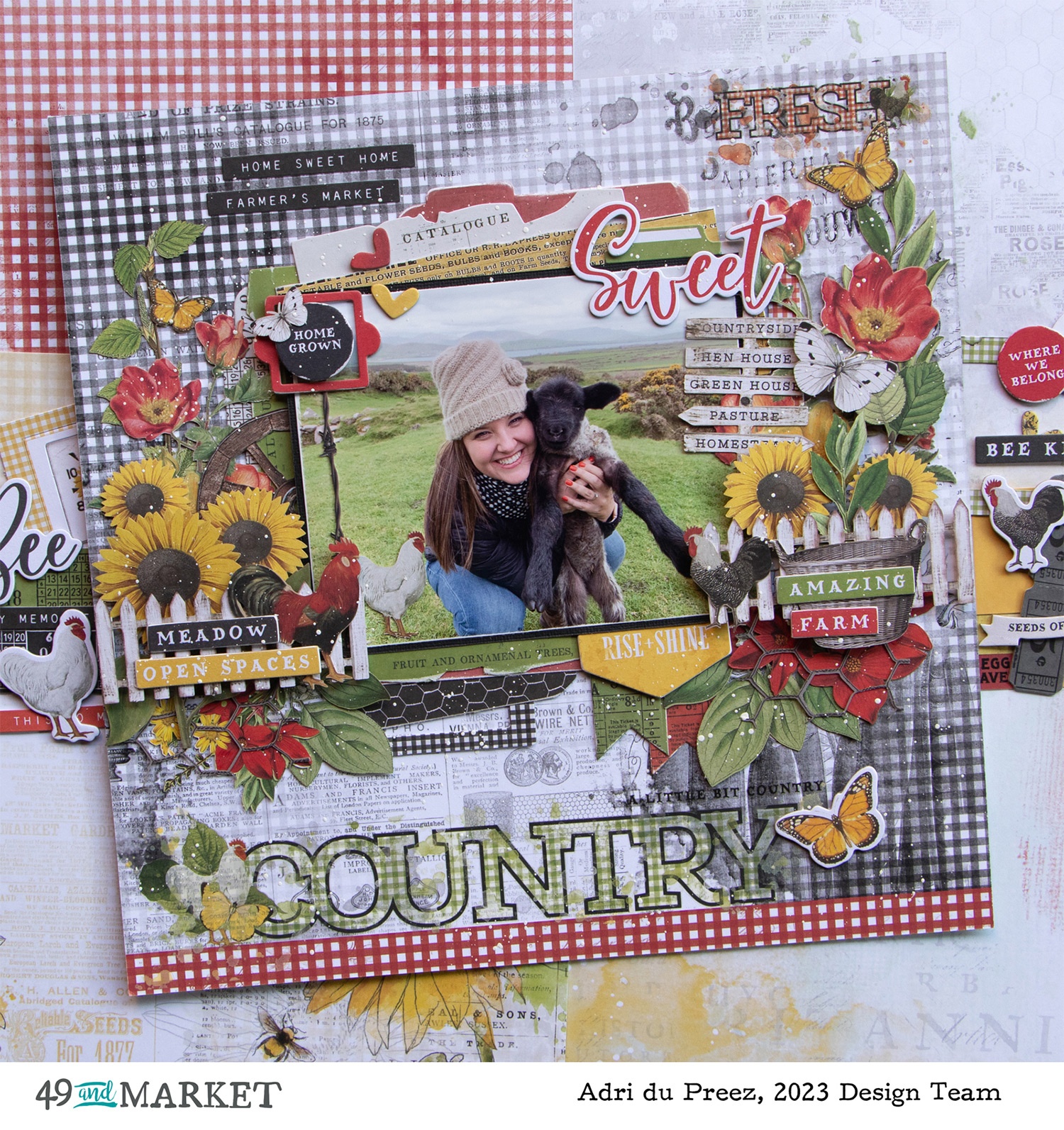 Here is my layout featuring the beautiful Vintage Artistry Countryside 12×12 collection. For this layout, I have used the reverse side of the paper called Sunny Days. This collection is vibrant and full of fun elements.