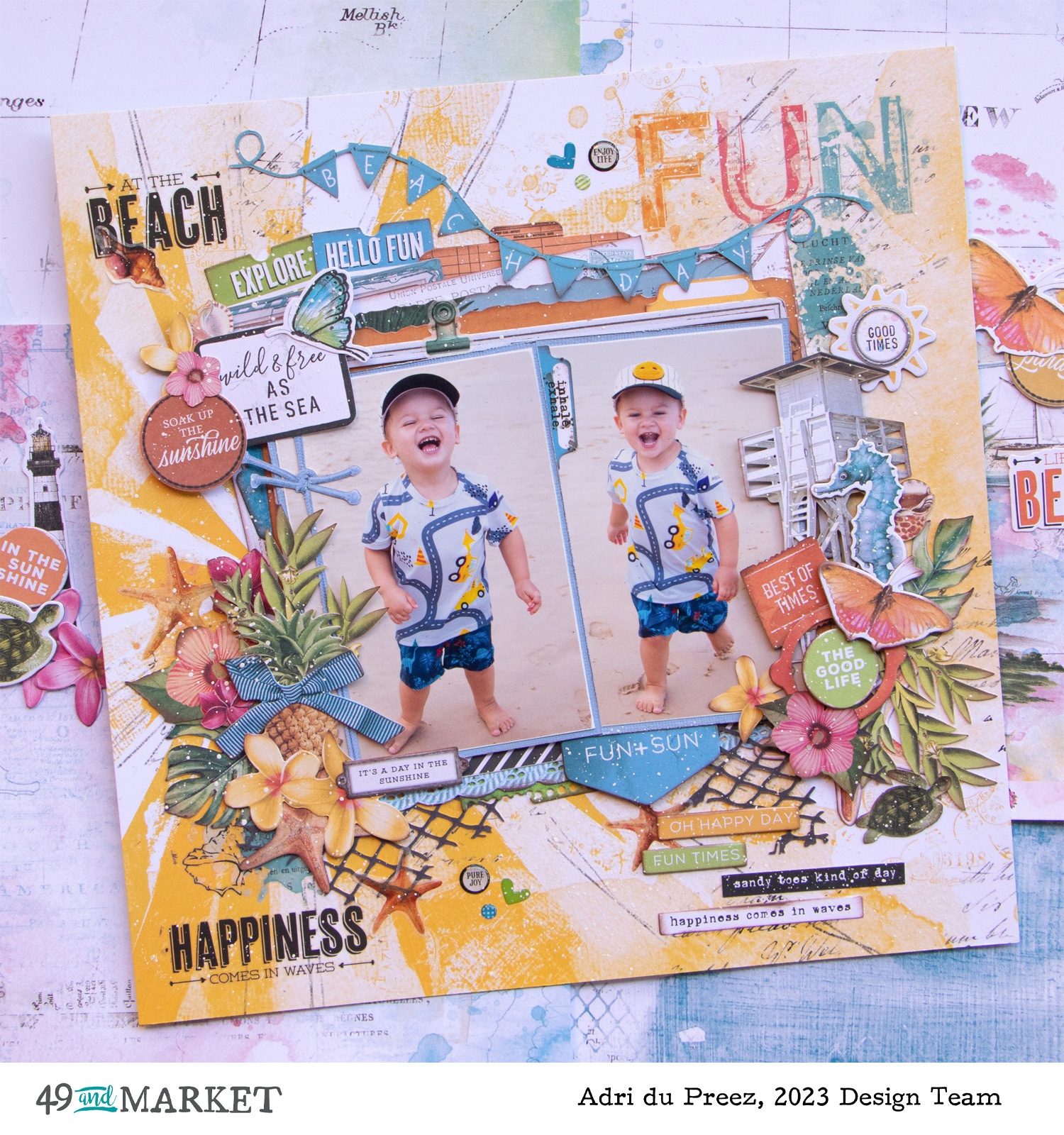 This is my first layout using the Vintage Artistry Sunburst collection. This collection is perfect for documenting summer memories at the pool or on the beach.