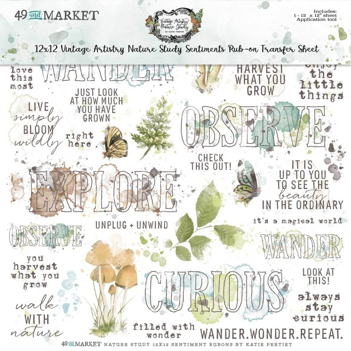 High-quality rub-on transfers. Each 6×8″ sheet is filled with various imagery to coordinate with the collection. Images include foliage, word art, textures, engravings and more. They can be applied to a variety of clean surfaces for a unique and beautiful effect. Imported