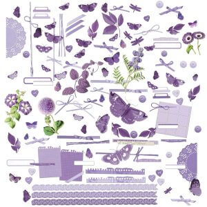 A wide assortment of elements that include butterflies, florals, photo wraps, bows, buttons, tabs and more in a beautiful lavender color range! The detailed intricacy of laser cut pieces bring projects to another level with ease. Imported
