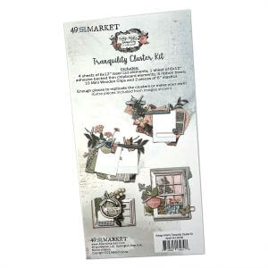 Brand new Cluster Kits are filled with bits to create 4 clusters as shown on packaging or mix and match to make your own. The Vintage Artistry Tranquility Cluster Kit includes the following pieces: 4 sheets of 6×12” laser cut elements; 1 sheet of 6×12“ adhesive backed thin chipboard elements; 4 ribbon bows; 10 Mini Wooden Clips and 2 pieces of 6” elastics. Slight variations may occur.Imported