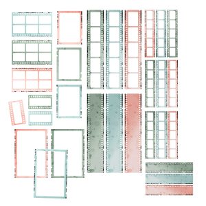 The Vintage Artistry Tranquility collection Filmstrip Frames are perfectly coordinated to enhance any of your crafting projects. Each pack includes a total of 30 assorted frames and filmstrips which are printed on clear acetate. The frames allow for a wide variety of configurations with varying levels of opacity. Acetate is non-archival. Imported