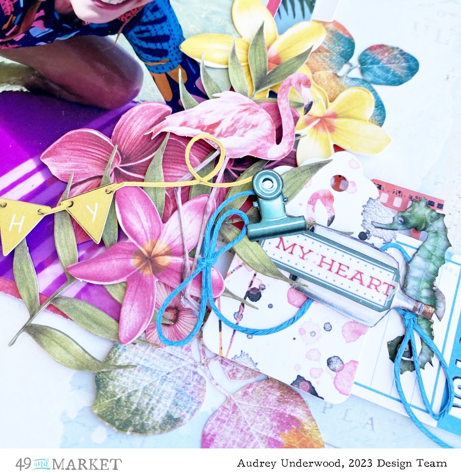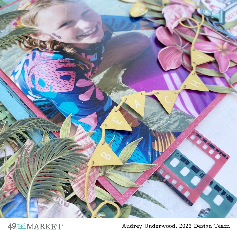 I have lots of beach and pool photos so when I seen 49 and Markets Vintage Artistry Sunburst, I was very excited and absolutely love all the elements to match the Collection.