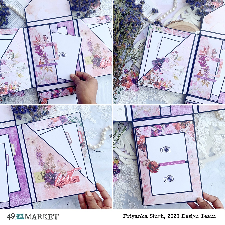 This time I came forward with a folio album in black for which I used the Foundation Envelope Pocket Folio along with ARToptions Plum Groves Collection. To begin with, I assembled the complete album as per super easy instructions on the back of the package.