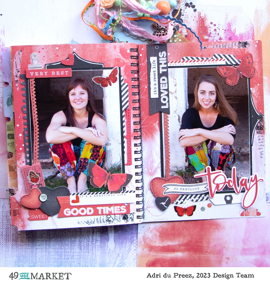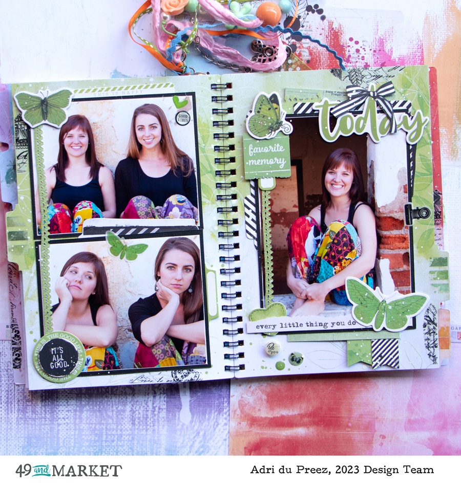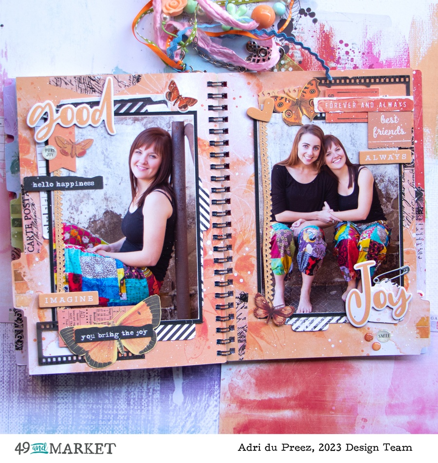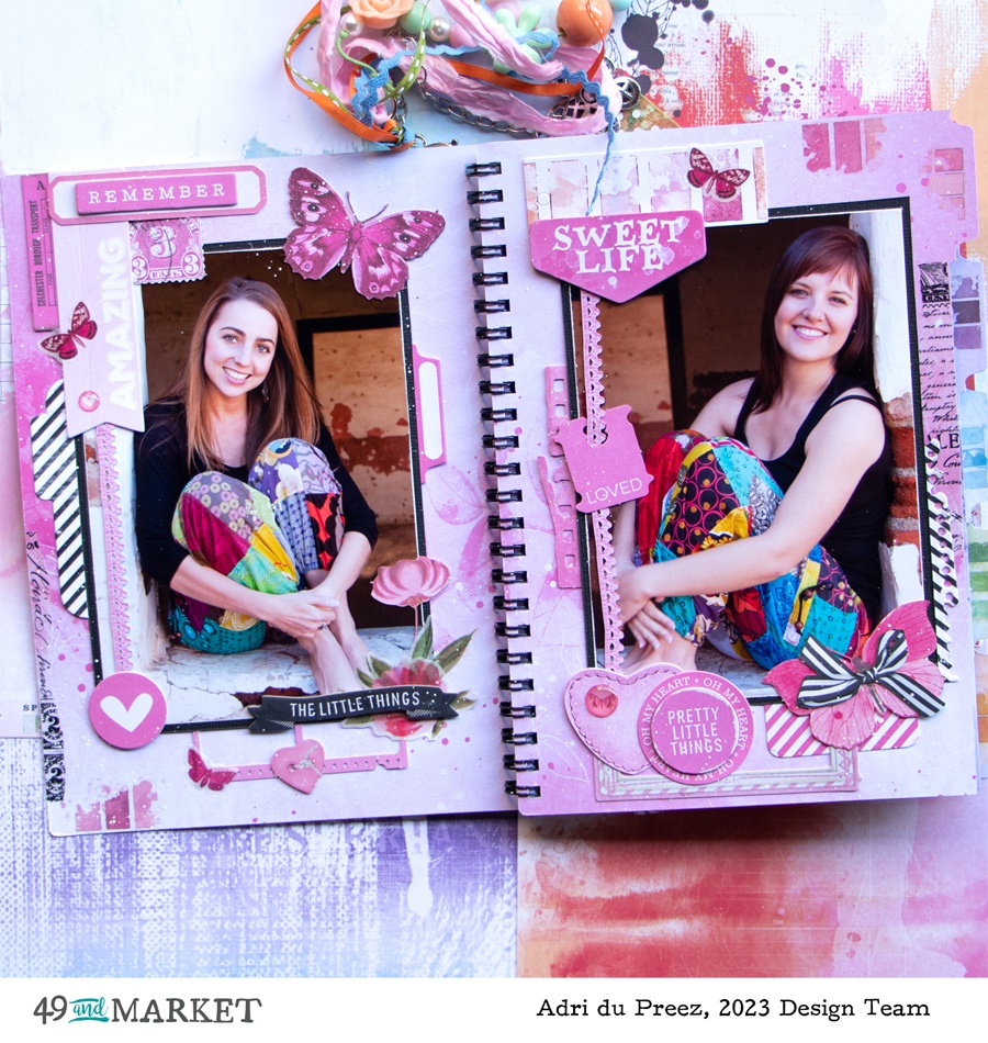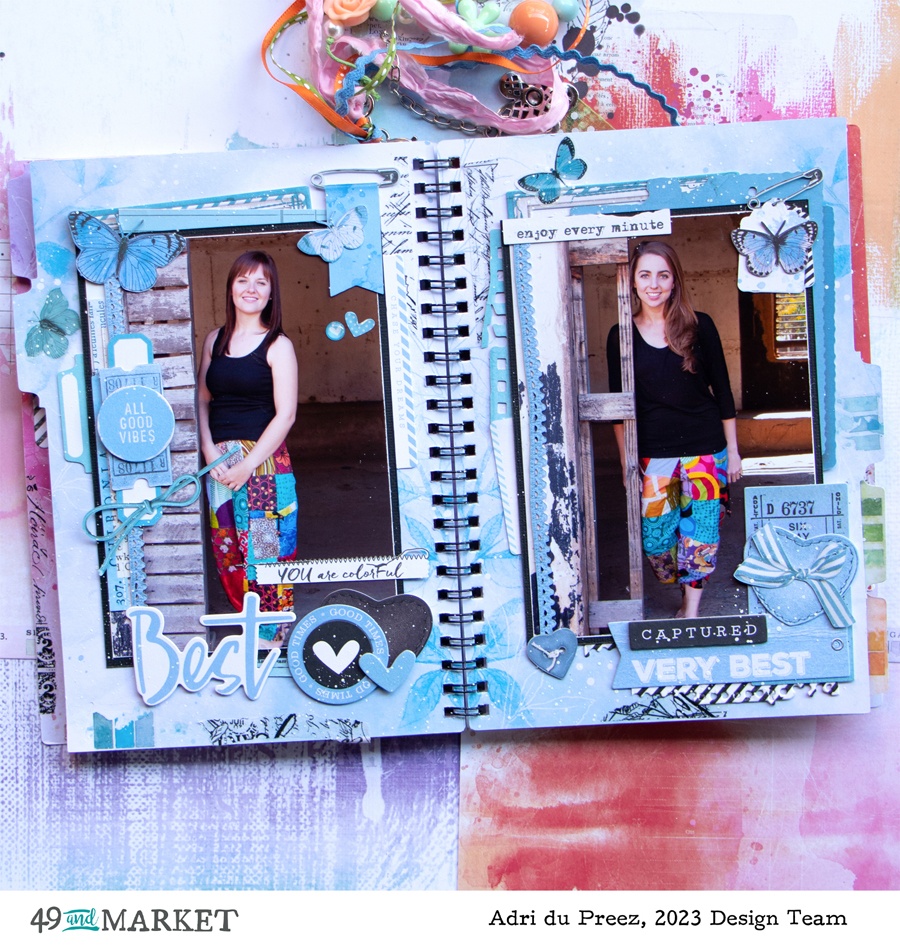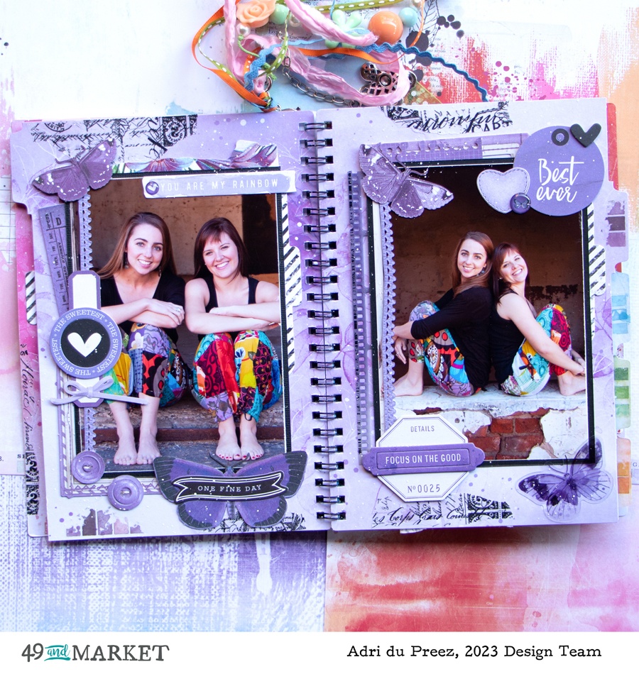 I am sharing my large Spiral Notebook from the Spectrum Gardenia collection. I also used elements from the Color Swatch Ocean, Lavender, and Blossom collections. These colorful photos of my daughter and her best friend are perfect for this collection.