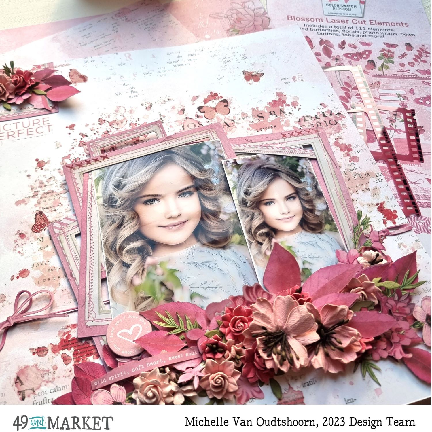 Oh my gosh aren’t these new releases from 49 and Market just stunning – and I am loving these color swatch series. Today I have created a layout using the Color Swatch Blossom collection. Isn’t this color just fabulous? (I actually want to say it’s delicious!)