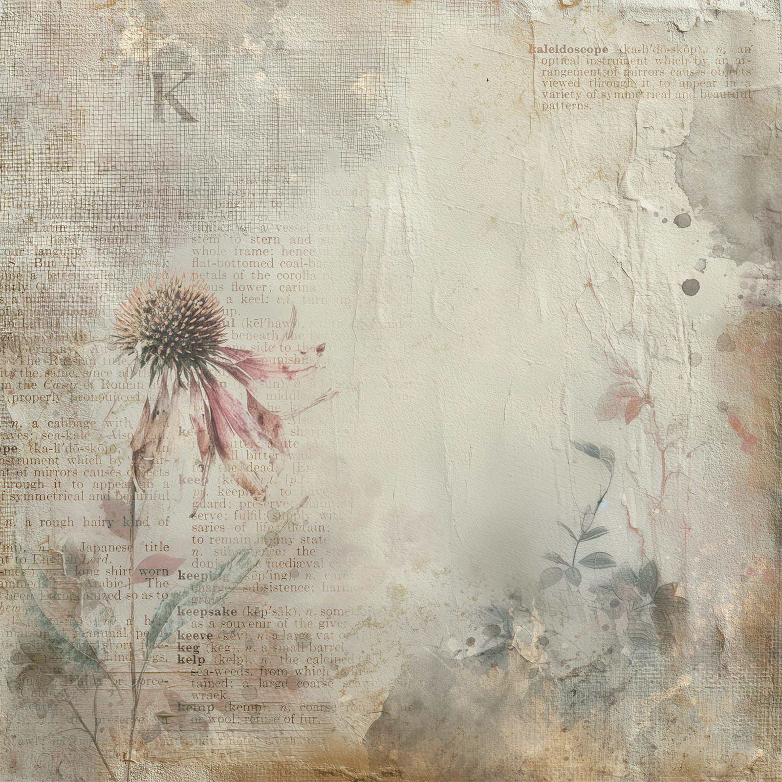 Each individual paper in the Faded Memory Lane series is a standalone work of art, blending ethereal botanical sketches with the grit of weathered textures and vintage ledger scripts. The palette is a sophisticated mix of dusty blues, warm creams, sepia, and muted pinks, designed to evoke the feeling of a cherished, time-worn memory.