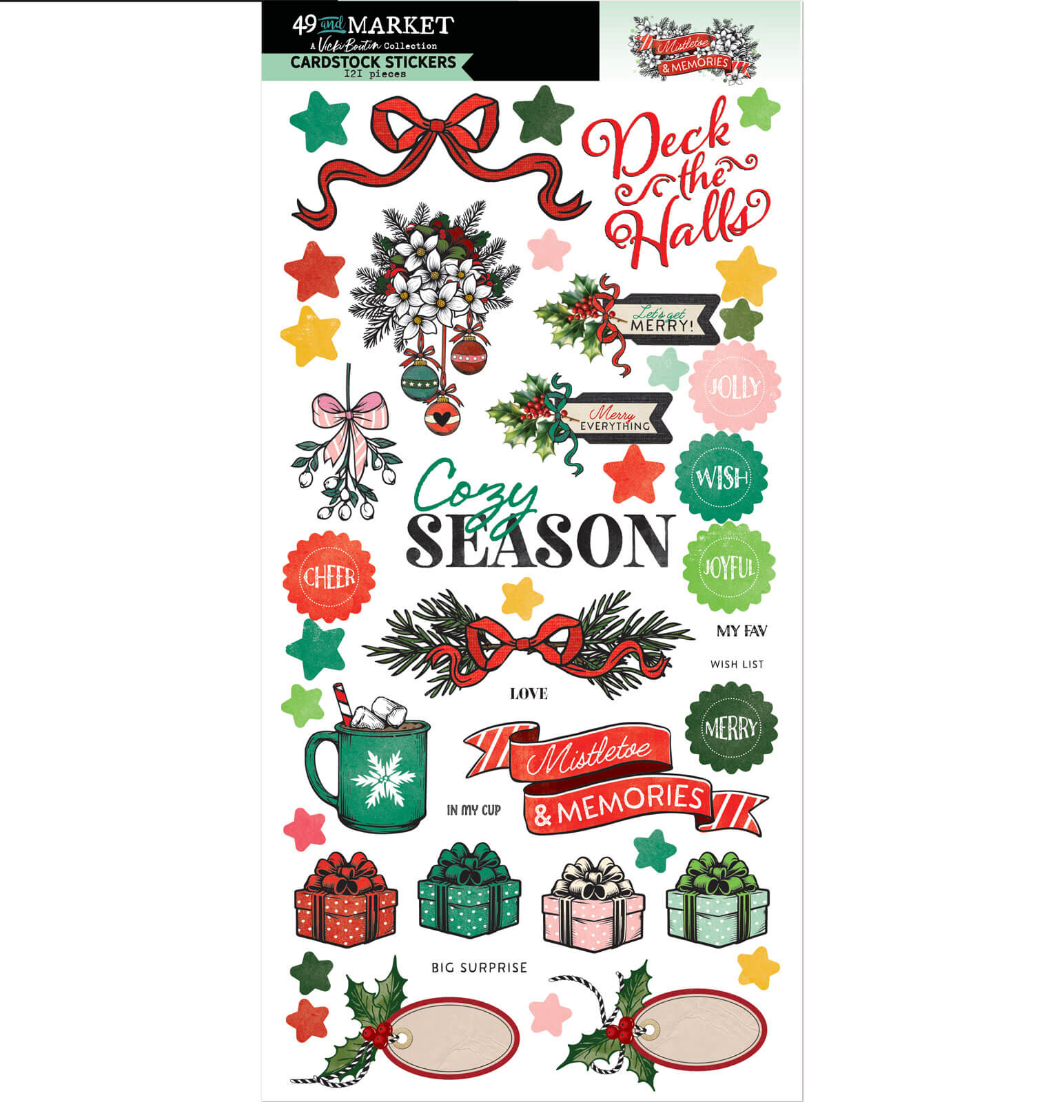 Deck your halls and pages with the enchanting Vicki Boutin Mistletoe and Memories Cardstock Stickers! This festive collection is brimming with a delightful assortment of embellishments, perfect for capturing all your cherished holiday moments. You’ll find charming titles to headline your layouts, a variety of decorative elements to sprinkle throughout, sweet little bows for a touch of charm, convenient chitchat stickers for quick journaling, and versatile labels to organize your memories. Add a touch of Vicki Boutin’s signature mixed-media magic to your Christmas crafts with these vibrant and easy-to-use cardstock stickers!