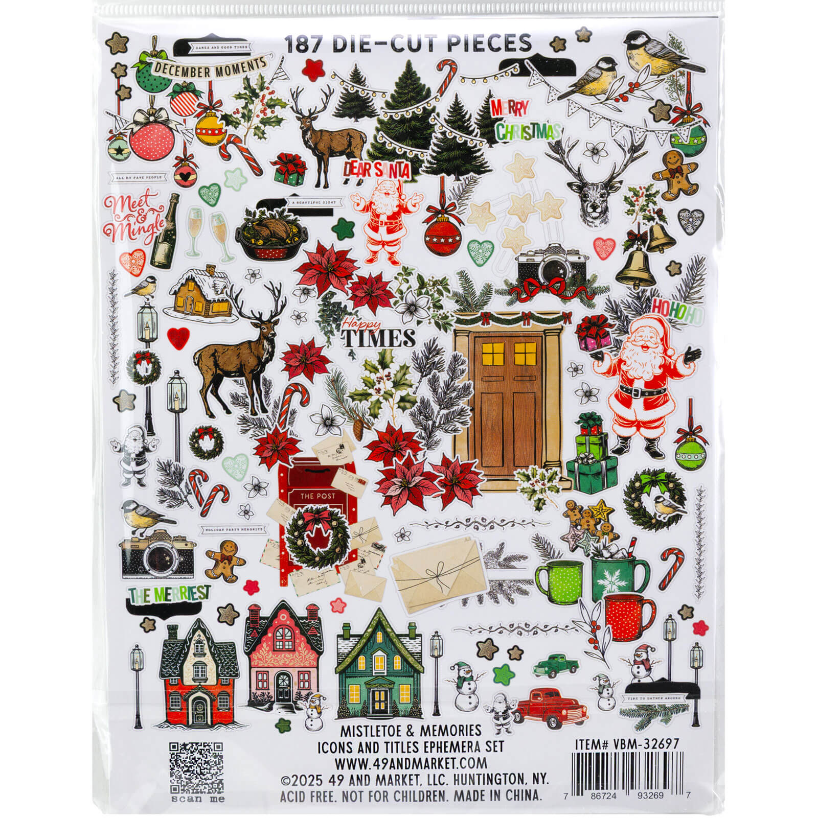 Get ready to “deck the halls” with the Vicki Boutin Mistletoe and Memories Icons and Titles Ephemera Set! This delightful collection is packed with all the charming holiday trimmings you need, including festive Santas, cheerful gingerbread men, classic bells, decorative letters, and so much more. Perfect for adding iconic holiday cheer and easy titles to your scrapbooks, cards, and festive crafts.