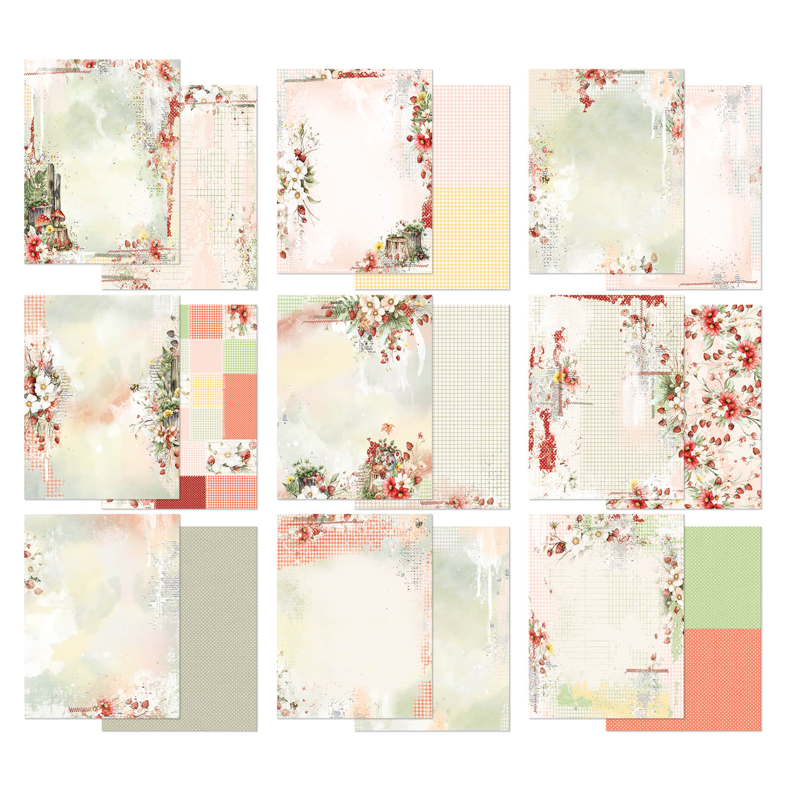Step into the vibrant world of Joanne Bain’s “Nature’s Haven” collection, where the beauty of the natural world unfolds in a captivating palette of reds, yellows, and greens. This stunning collection is a celebration of organic wonders, featuring delightful images of ripe strawberries, intricate florals, and the timeless charm of natural wooden textures. Each piece in “Nature’s Haven” invites you to embrace the warmth and serenity of the outdoors, bringing a touch of nature’s purest artistry into your space. Explore this exquisite collection and discover your own slice of paradise. Pack includes three each of 9 double-sided sheets of heavy weight cardstock.