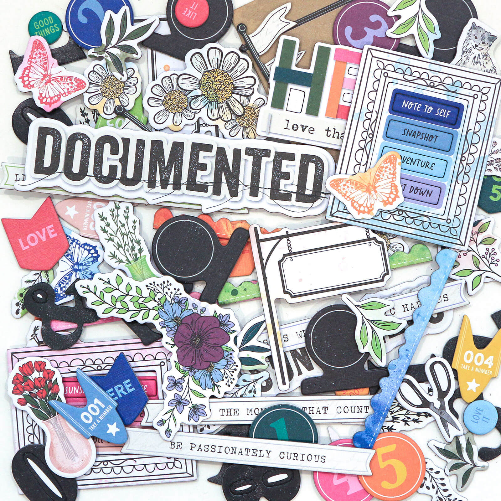 Eye-catching titles to highlight your memories and a curated selection of icons that complement the Flower Emporium aesthetic. Add a touch of dimension and personality to your scrapbooking, card making, and mixed media projects with these high-quality chipboard elements.”