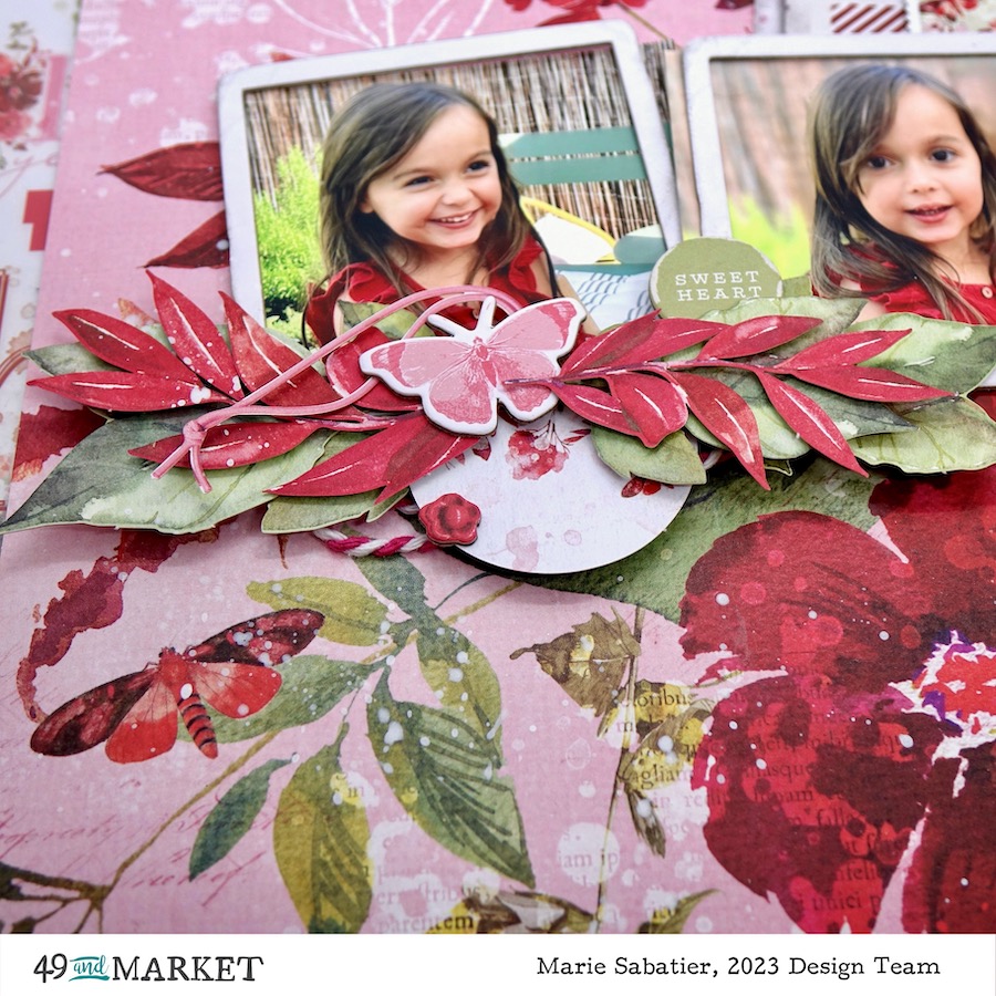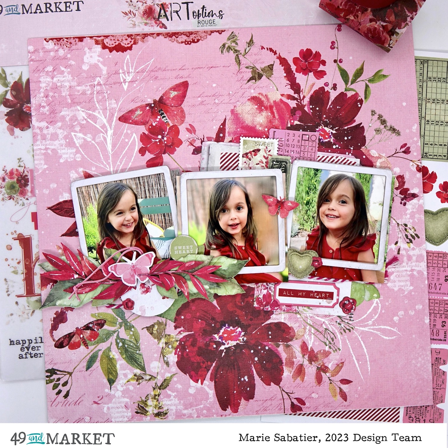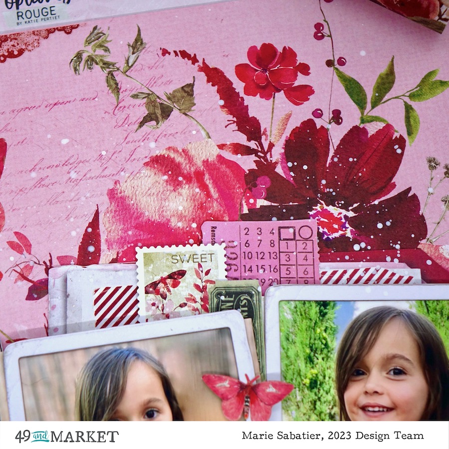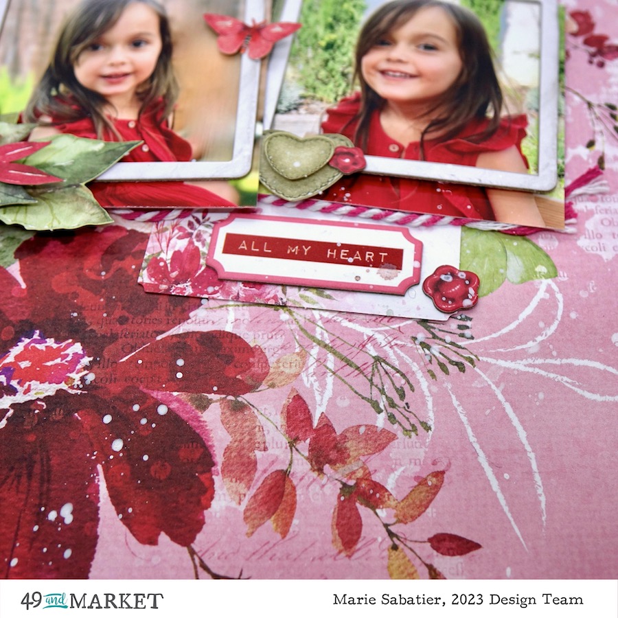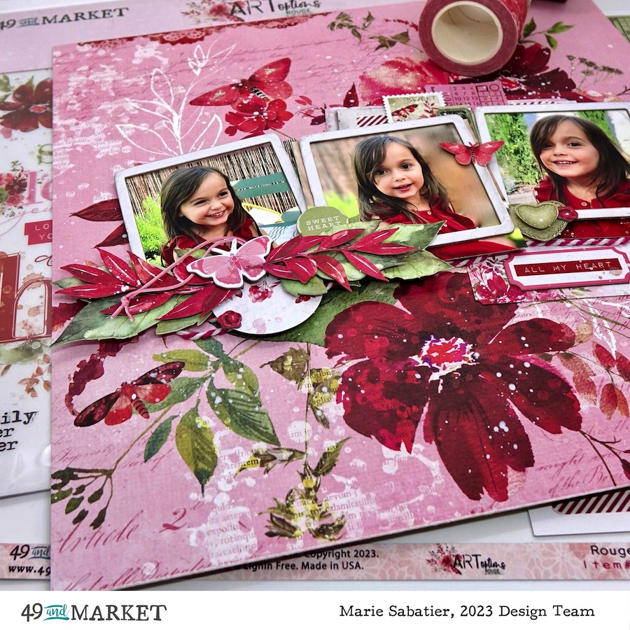 My first inspiration of this month of February is realized with the «ARToptions Rouge» collection it is simply sublime and carries so well its name. It is a bouquet of flowers with intoxicating colors. Ideal to stage pretty creations representing Valentine’s Day. But for my realization I opted for these photos of my little niece totally in harmony with the idea of my arrangement. But this collection is so complete and varied that I already have many other creative ideas.