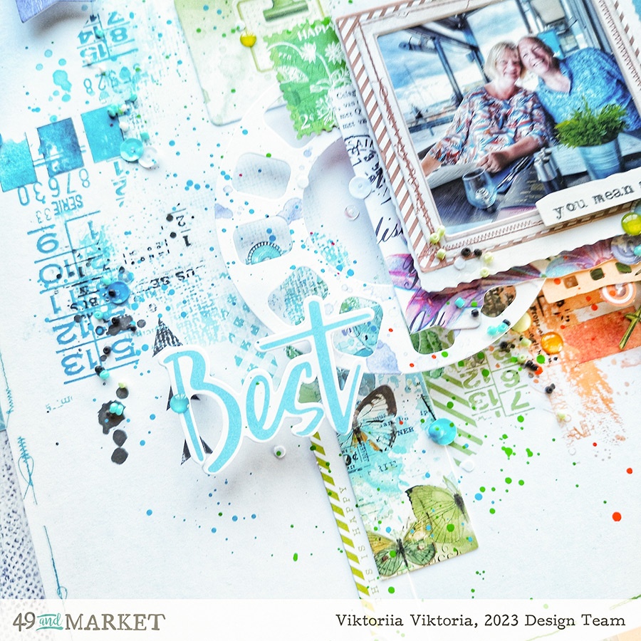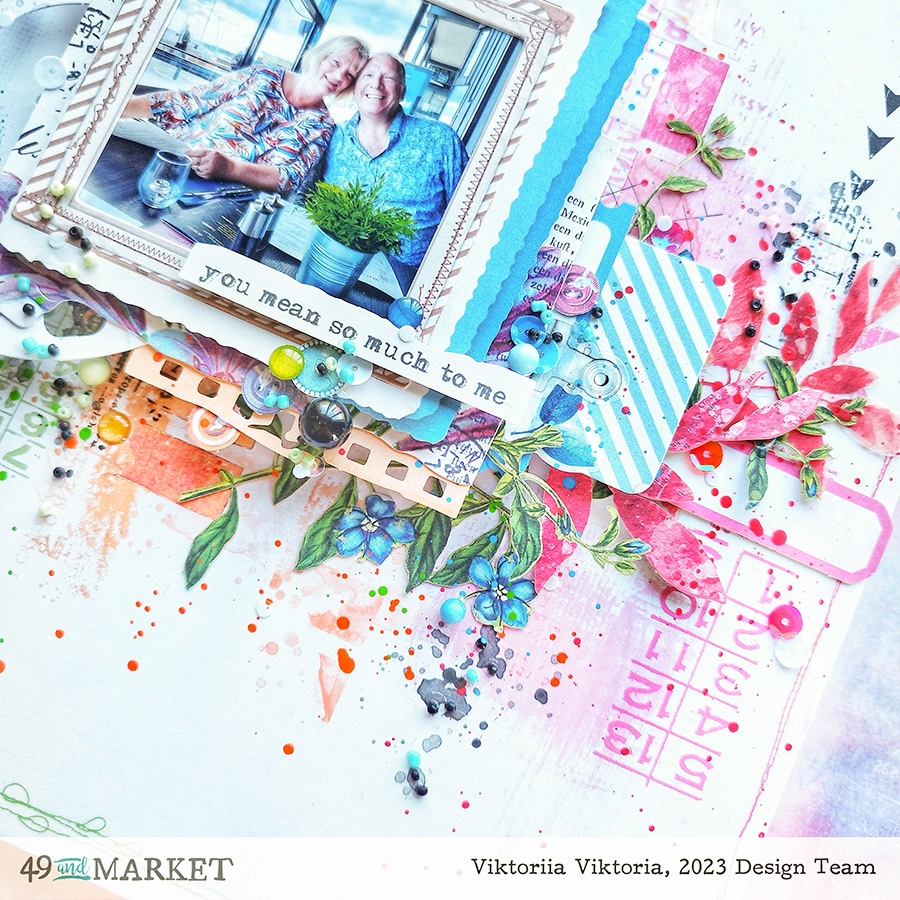 I used page from Spectrum Gardenia Ultimate page kit. But I didn’t use the sketch from this set. The sketch was in my head 🙂 I liked this sheet of paper so much that I decided to use its advantages. I built a color composition according to the order of the colors located on the sheet.